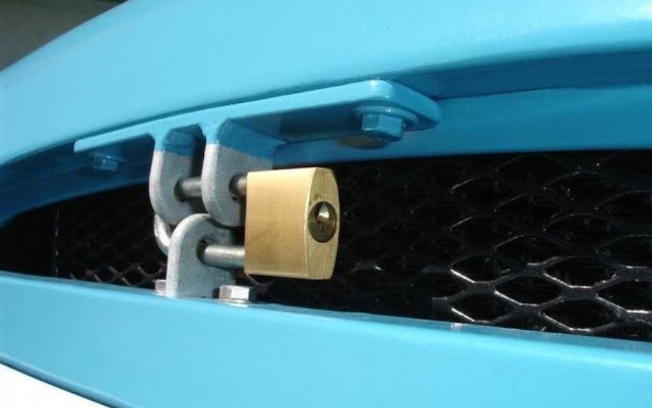 Обычно это механические замки, препятствующие быстрому открыванию капота. Это мешает бандитам завести угоняемую машину. Самодельная защита автомобиля от угона путем блокировки капота осуществляется установкой дополнительных тросов из салона и замков. Нужные детали подбираются в автомобильных или строительных магазинах.