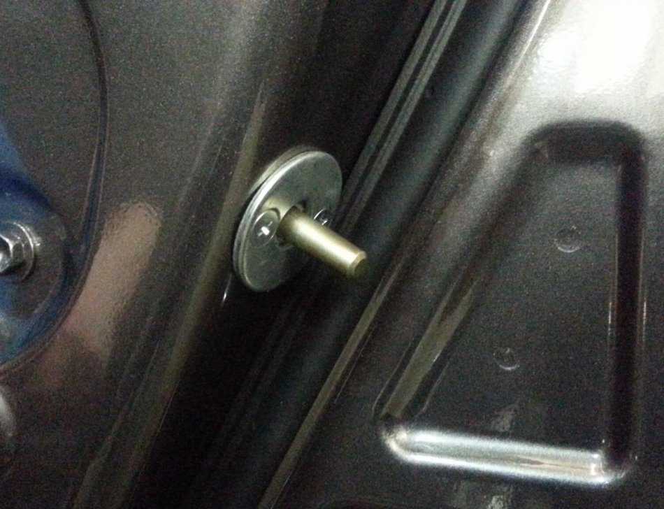 Защита автомобиля от угона своими руками предполагает также блокировку дверей. В этих целях применяется защелка, которая устанавливается снизу двери. Она представляет собой штырь, который срабатывает в момент попытки проникновения. Устройство не дает угонщикам открыть дверь.