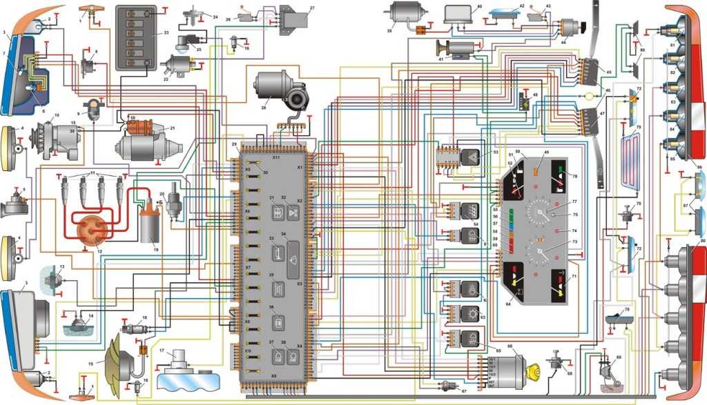 Но вернемся к кузову, ведь схема проводки Москвич 2141 внутри автомобиля включала в себя: