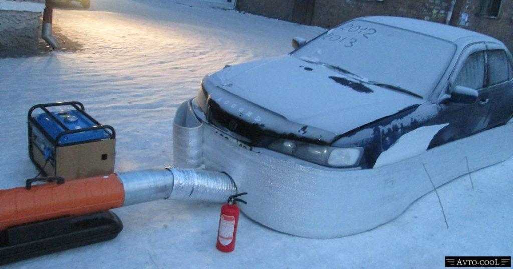 - тепловая пушка. Наверное, самый лучший вариант для тех, кто готов немного потратиться. Специальное оборудование поможет в считанные минуты привести транспортное средство в пригодность. В принципе, тепловая пушка является незаменимым вариантом для жителей северных регионов, где холодное время года преобладает над теплым периодом;
