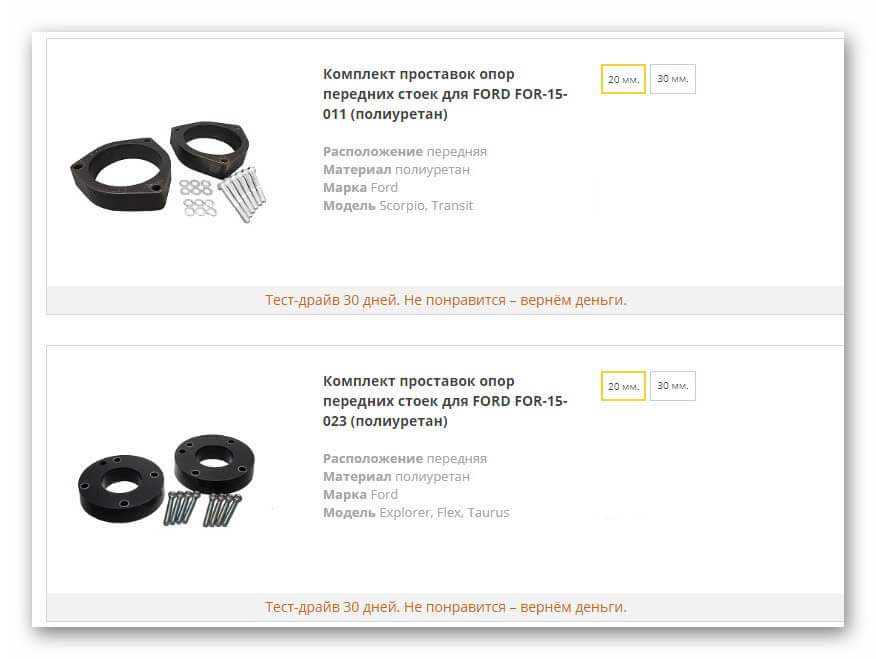 Если стоит проблема в поиске качественных проставок для Форд Фокус 2 и других моделей этого производителя, то большой ассортимент их представлен на сайте https://tema4x4.ru/catalog/prostavki/filter/mark_ts-is-ford/apply/. Там Вы найдете изделия от разных производителей толщиной 20, 30, 40, 50 мм, стальные, полиуретановые, алюминиевые, в общем под любые Ваши прихоти и желания.