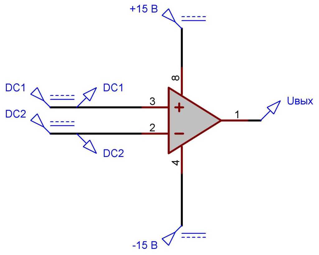 Вход 1 обозначается знаком «+» и называется неинвертирующим а вход 2 обозначается как «-» и является инвертирующим.