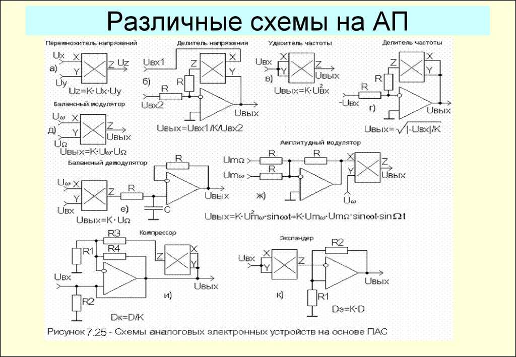 Данная схема находит применение, прежде всего в качестве компрессора сигналов для увеличения динамического диапазона, а так же для выполнения математических функций.