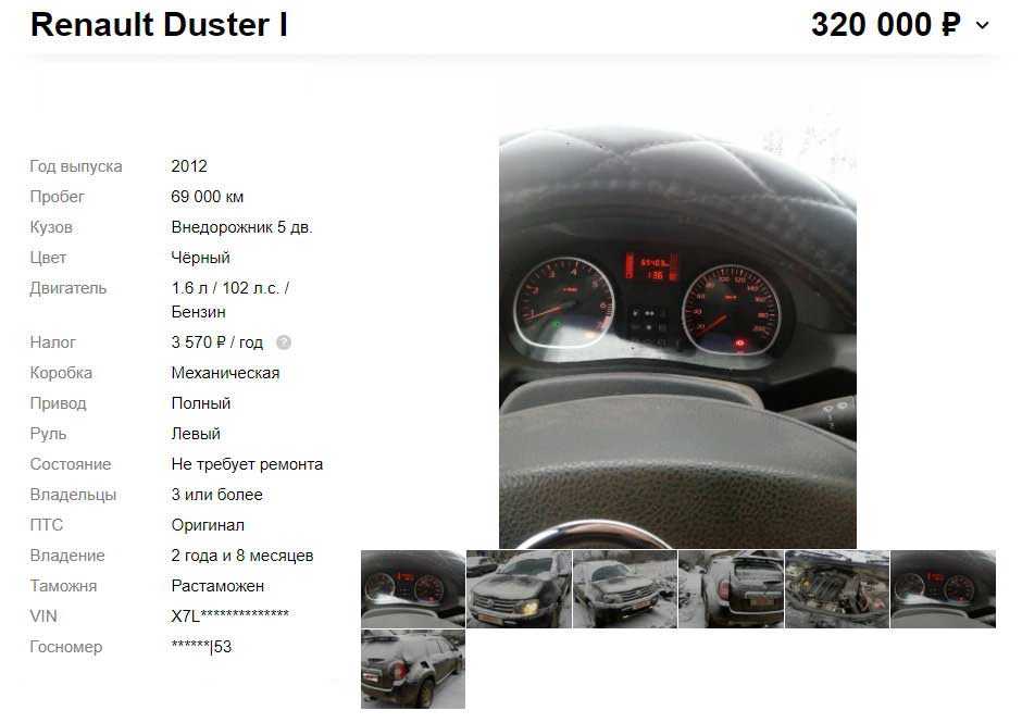 - Максимальная – 1 000 000 р. Duster I 2013 года с пробегом 4500 км, полный привод, МКПП, двигатель 2.0 бензин на 135 л.с.
