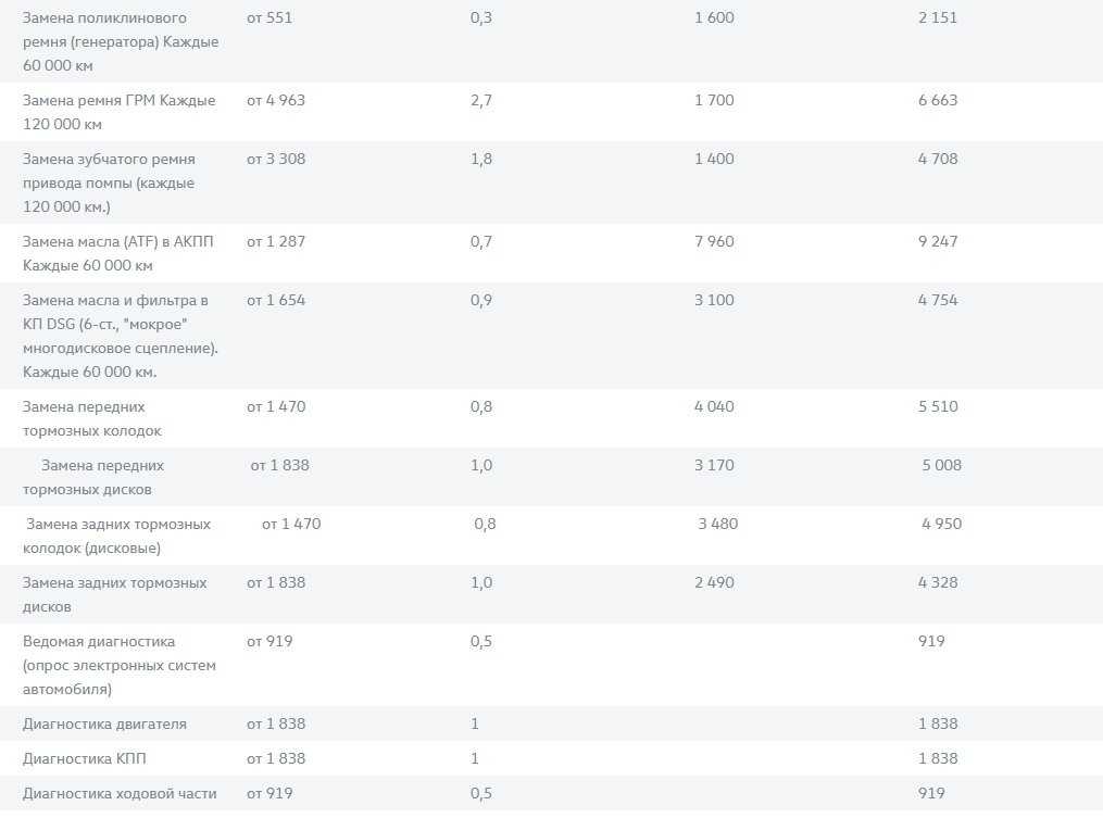 Ориентировочные расценки технического обслуживания для Volkswagen Polo V показаны ниже.