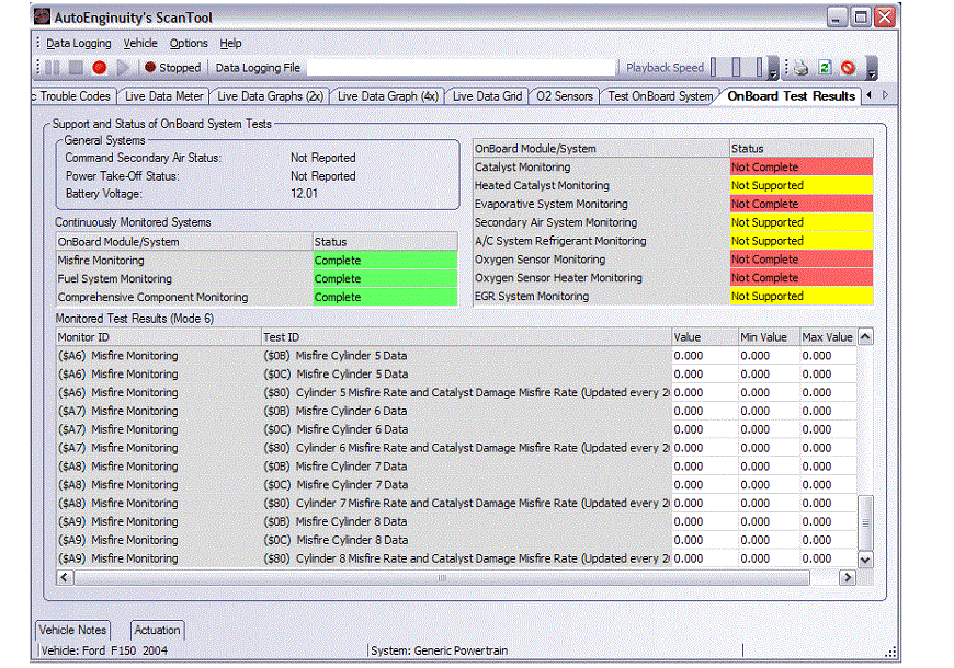 - измерительный прибор определяет коды готовности, поддерживаемые системой OBD.