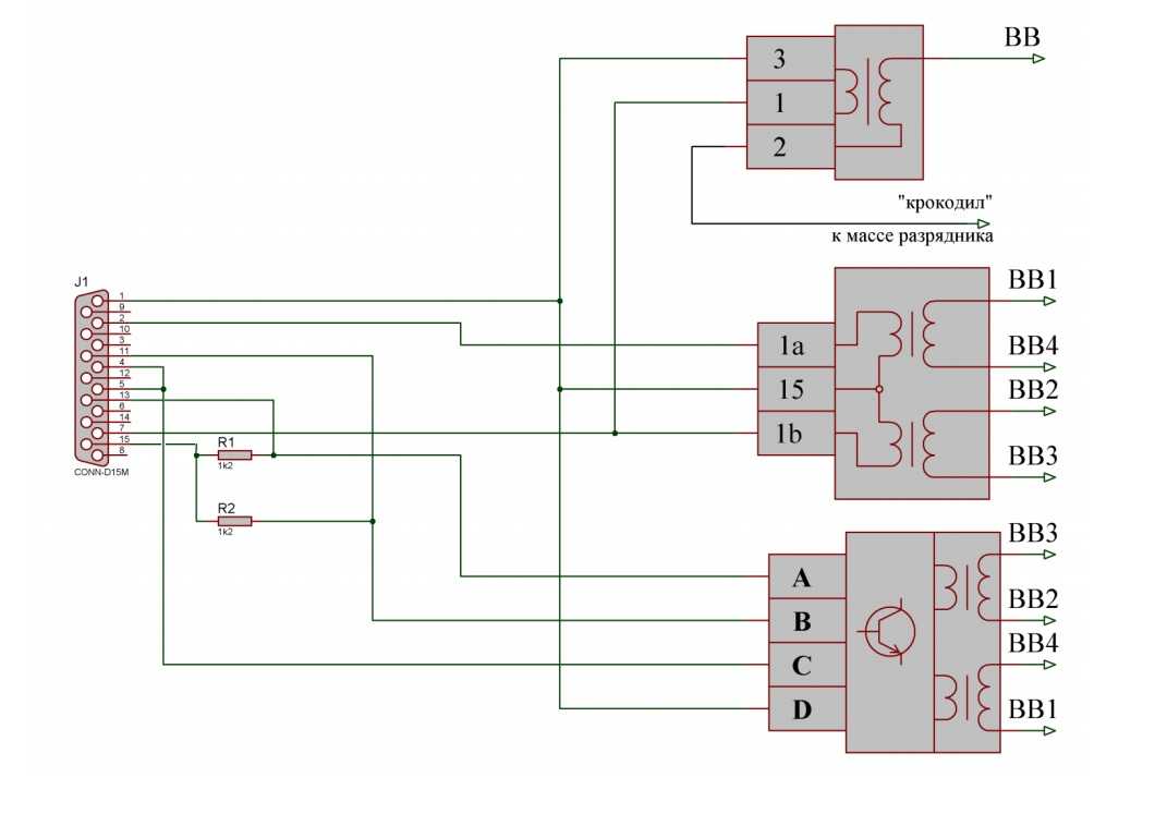 3. Для исключения искровых пробоев в разъеме устройства и его самоповреждения, при тестировании некоторых ИКЗ, произведена пере распиновка разъема DB-15.