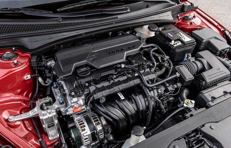 Компания решила оставить старые двигатели от предшественника Элантры. Поэтому при осмотре можно увидеть 4-цилиндровый двигатель, работающий на бензине. У каждого цилиндра есть по 4 клапана, а сам мотор имеет поперечное расположение. Точно такие же двигатели установлены на KIA Церато.