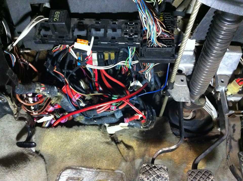 Когда необходимый комплект приобретен, приступите к прошивке автосигнализации. Под рулевым колесом транспортного средства вы увидите размещенные там педаль сцепления, рычаг открытия капота и блок предохранения.