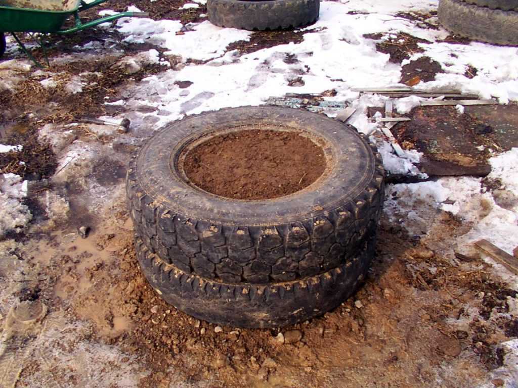 • Не стоит укладывать шины непосредственно на поверхность земли. Связано это с тем, что земля нагреваясь нагревает и резину, которая может выделять в свою очередь вредные пары. Совет здесь такой, что необходимо укладывать покрышки на гидроизоляционный слой, это поможет избежать ненужного нагрева;