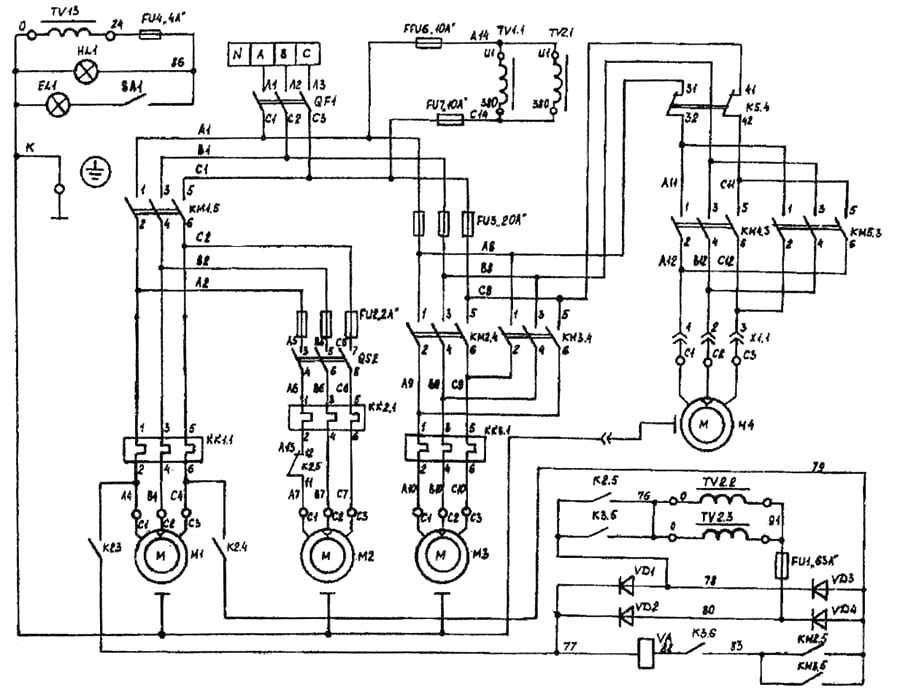 Условно все электрические схемы можно разделить на типовые и не типовые. Типовые схемы это такие схемы, которые выполняют одну или несколько функций и имеют повсеместное применение. К примеру, схема включения асинхронного электродвигателя, (простая или реверсивная) это типовая схема, если в эту схему добавить устройство динамического торможения с выдержкой времени, то такая схема станет уже не типовой. По сути каждая не типовая схема, это набор типовых схем включенных таким образом, что они образуют какой-то цикл, последовательных действий узлов и агрегатов складывающихся в одну или несколько автоматических операций.