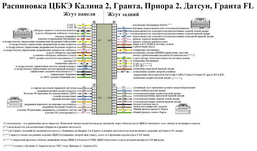 Ниже представлена схема распиновки центрального блока кузовной электроники.