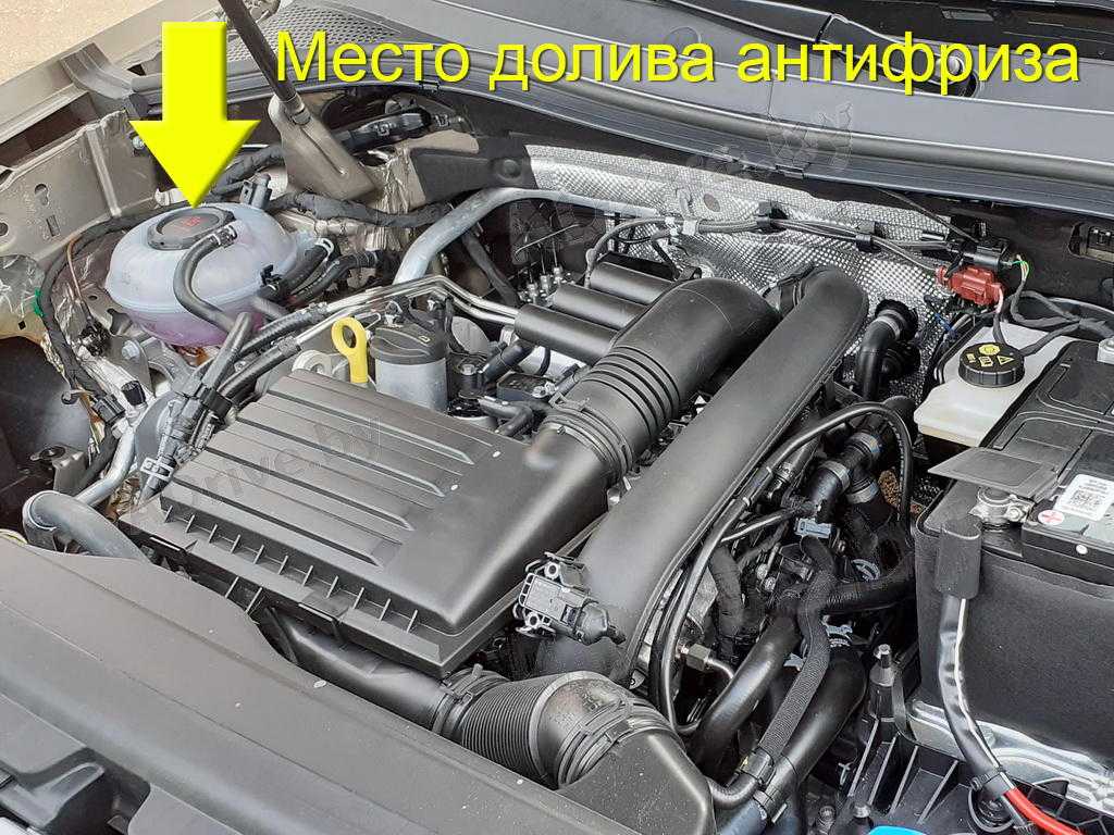 Долив антифриза осуществляется через пробку расширительного бачка. Уровень жидкости должен быть между отметками «Min» и «Max». Не рекомендуется смешивать антифризы разных цветов и разных производителей, так как это может привести к повышенной коррозии деталей системы охлаждения и к образованию осадка, засорению радиатора.