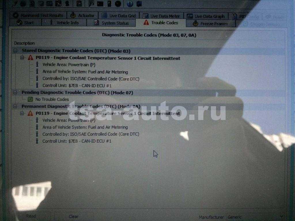 Пробовал вешать этот датчик взамен установленных, но положительного результата не было. Зато проявилась ошибка p0119 engine coolant temperature sensor 1 circuit intermittent