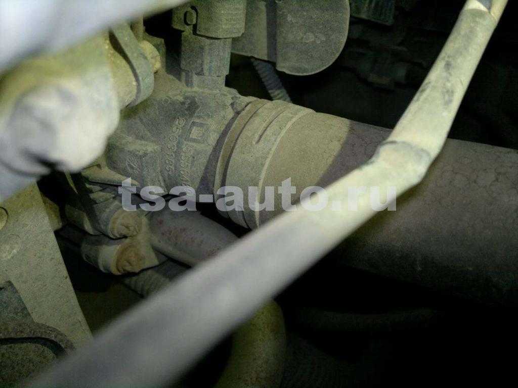 - Ослабляем хомут патрубка впуска на дросселе затем сначала снимаем разъем с ДМРВ, а потом снимаем патрубок;