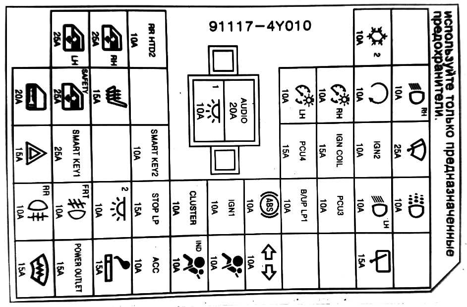 | 29 | 10А IGN Дневные ходовые огни, корректор света фар, блок управления кондиционером, передние фары, реле электро стекло подьемников (без ВСМ), блок ВСМ, блок управления системой электронного ключа (с блоком ВСМ) |