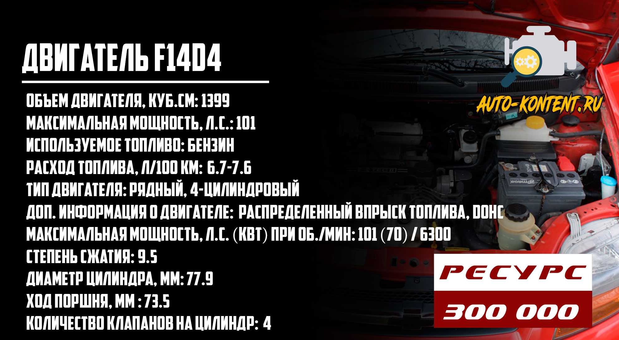 Силовой агрегат F14D3 разработали в начале 2000-х для малогабаритных авто. По сути, мотор повторил конструкцию опелевского X14XE выпуска 1998 года и многие детали в них взаимозаменяемы, а параметры КШМ идентичны.