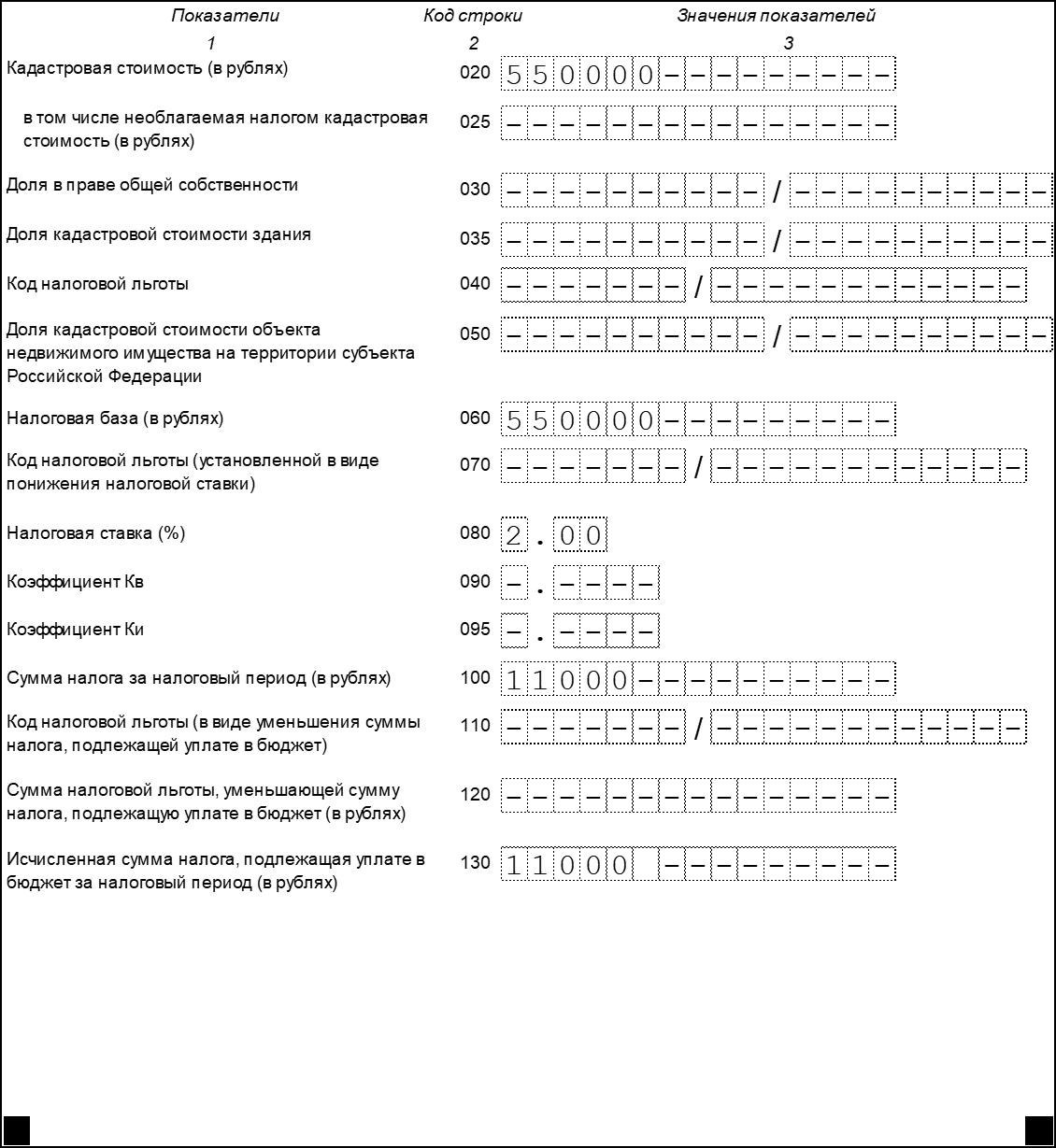 - 010 — КБК по налогу,