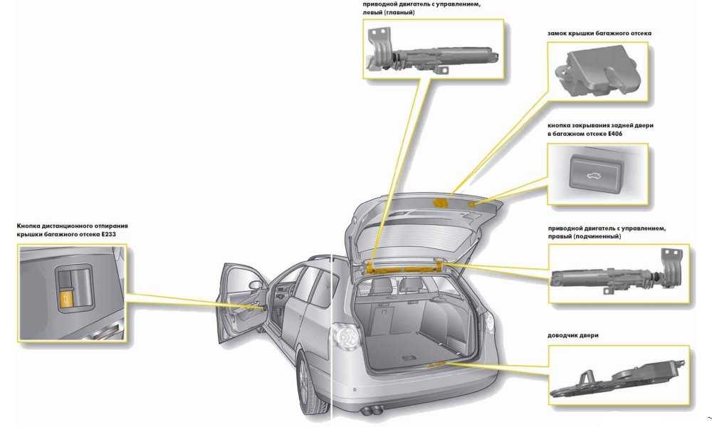 - Открыть дверь багажника и зафиксировать ее подпоркой подходящего размера.