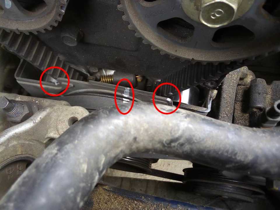 Зачем столько меток? Т.к. шкив коленвала я не снимаю, то выставить ГРМ обратно так, как это обычно делается, я не смогу. Так что надо будет натянуть шкивы сразу с ремнем обратно да так чтобы все встало как раньше. Так что метки пригодятся.