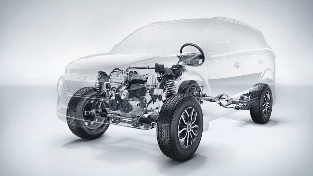 - В качестве платформы использовался ранее выпущенный седан Lifan 820. Этот момент определяет то, что автомобиль имеет относительно компактные размеры. Однако, модель имеет высокую проходимость и от седана практически ничего осталась.