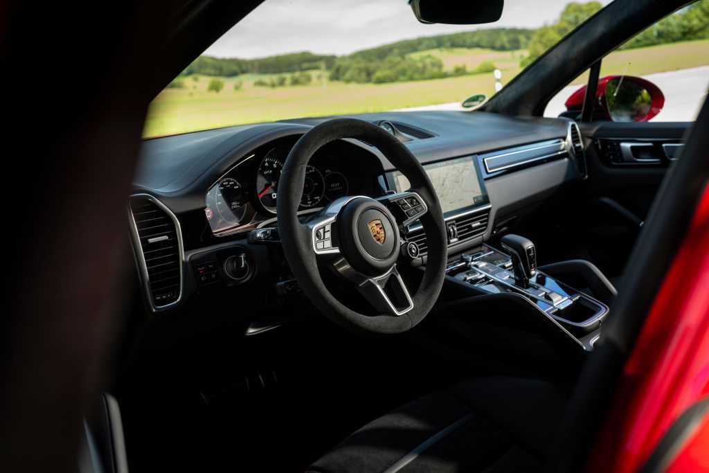 Дизайн салона Cayenne меняется в зависимости от выбранных модификации и опций. Но в каждой версии кроссовера внутреннее пространство обильно обшито натуральной кожей либо алькантарой. Как и у других моделей Porsche, у Cayenne часть трансмиссионного тоннеля идет под сравнительно большим углом. В эту зону вынесены рычаг КПП и клавиши настройки трансмиссии. Над ними закреплен широкий сенсорный монитор. Благодаря продуманной компоновке салона и длинной колесной базе посадка на задние сидения не менее комфорта, чем на передние кресла. Объем багажника у Cayenne достигает 645 литров.