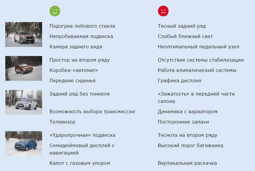 | Lada XRAY | Dongfeng H30 Cross | Lifan X50 | Renault Sandero Stepway | |