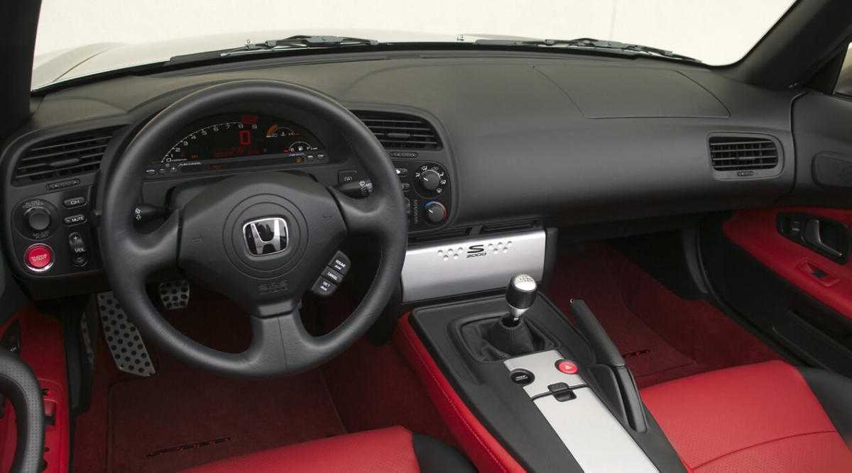 Если говорить за интерьер Honda S2000, то тут были проведены незначительные перемены. К примеру, на первом поколении автомобиля стояли красные сидения, теперь же их окрашивают в комбинированный цвет (красно-черный). На консоли, установленной по центру, свое место нашла вставка из хрома. Раньше стояла устаревшая аудио система, теперь ее поменяли на более новую, прогрессивную.