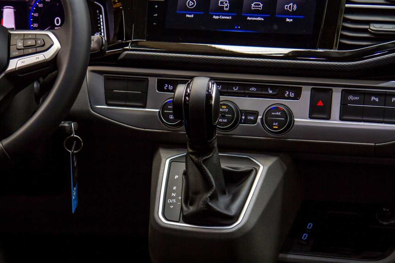 Справа от отдельного водительского сиденья в тестовой машине установлен двухместный диванчик, однако при желании можно заказать и двухместную кабину. В нашем случае компоновщики четко подчеркнули, что водитель тут – главный. Дело в том, что только водительское кресло имеет здесь регулировку по высоте, развитые валики боковой поддержки и функцию обогрева. Зато под подушкой сдвоенных пассажирских кресел расположились глубокие и удобные вещевые ящики. Пассажир, разместившийся по центру, может воспользоваться выдвижным подлокотником, а выступ центральной консоли лишь ненамного ограничит пространство перед его ногами – компоновщики впервые снабдили грузовой фургон компактным «подиумом» для селектора трансмиссии (в пассажирской версии Multivan эта площадка гораздо массивнее).