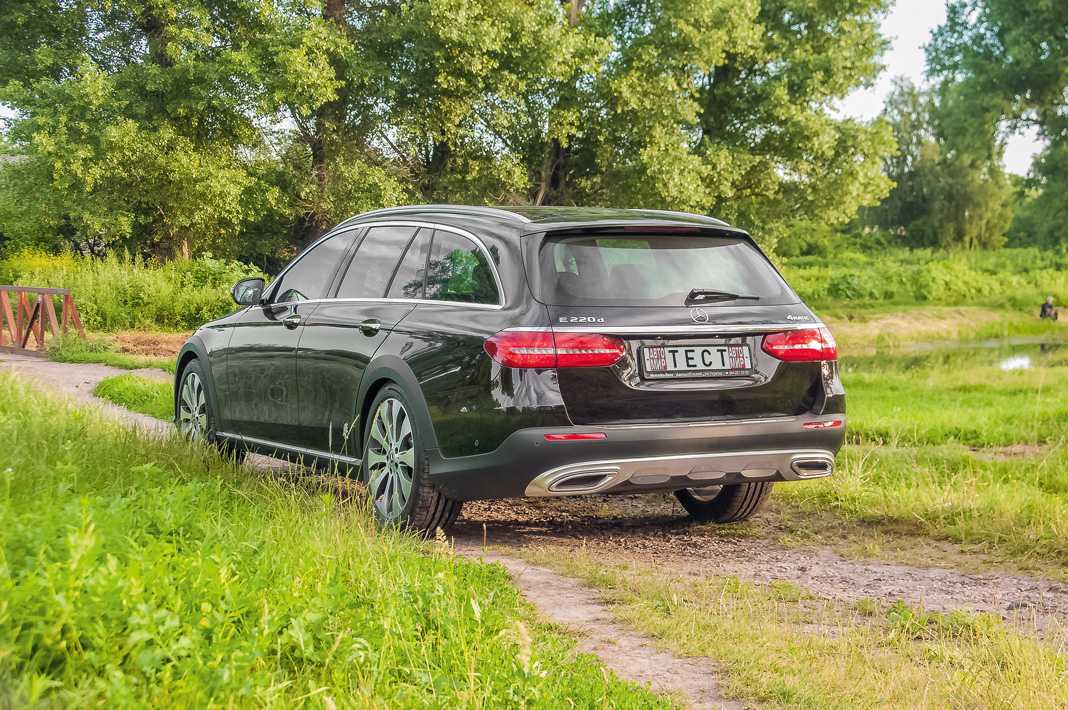 Mercedes-Benz E-класса – не спорткар, и внедорожный стайлинг не делает его менее аристократичным. Австрийские Альпы – вот его среда обитания, вы сегодня в Зеефельде покоряете склоны, а завтра выгружаете лыжи, пакуете доски и отправляетесь в Португалию на серфинг. В программе нет палаточного городка на Южном Буге. Так что и внедорожные способности этого автомобиля соответствуют предназначению. Коронная фраза «достаточно для форсирования» бордюров – просто не уместна в данном случае: на бордюр, конечно, заехать можно, но нужно ли? Что это за ребячество?