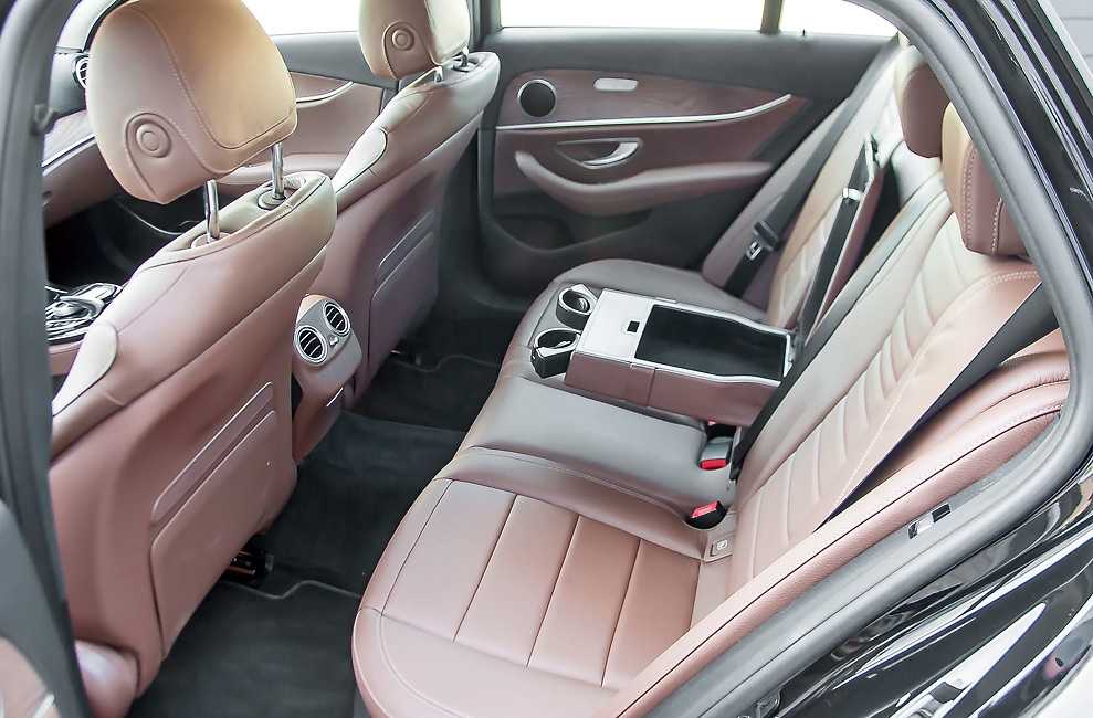 Дизайн салона практически стандартный, если вообще по отношению к новому Е-классу уместна такая характеристика. Это логично: если внешние элементы призваны подчеркнуть эксклюзивность версии и в то жен время несут практическую нагрузку, то в салоне вряд ли покупатель захочет что-то отличное. Так что набор небольшой: спортивные педали (нержавейка с резиновыми вставками), особые коврики, возможность заказать отделку «алюминий/карбон». У нас на тесте была версия с «деревом». И лично я не настолько прогрессивен, чтобы поменять благородную древесину на карбон.