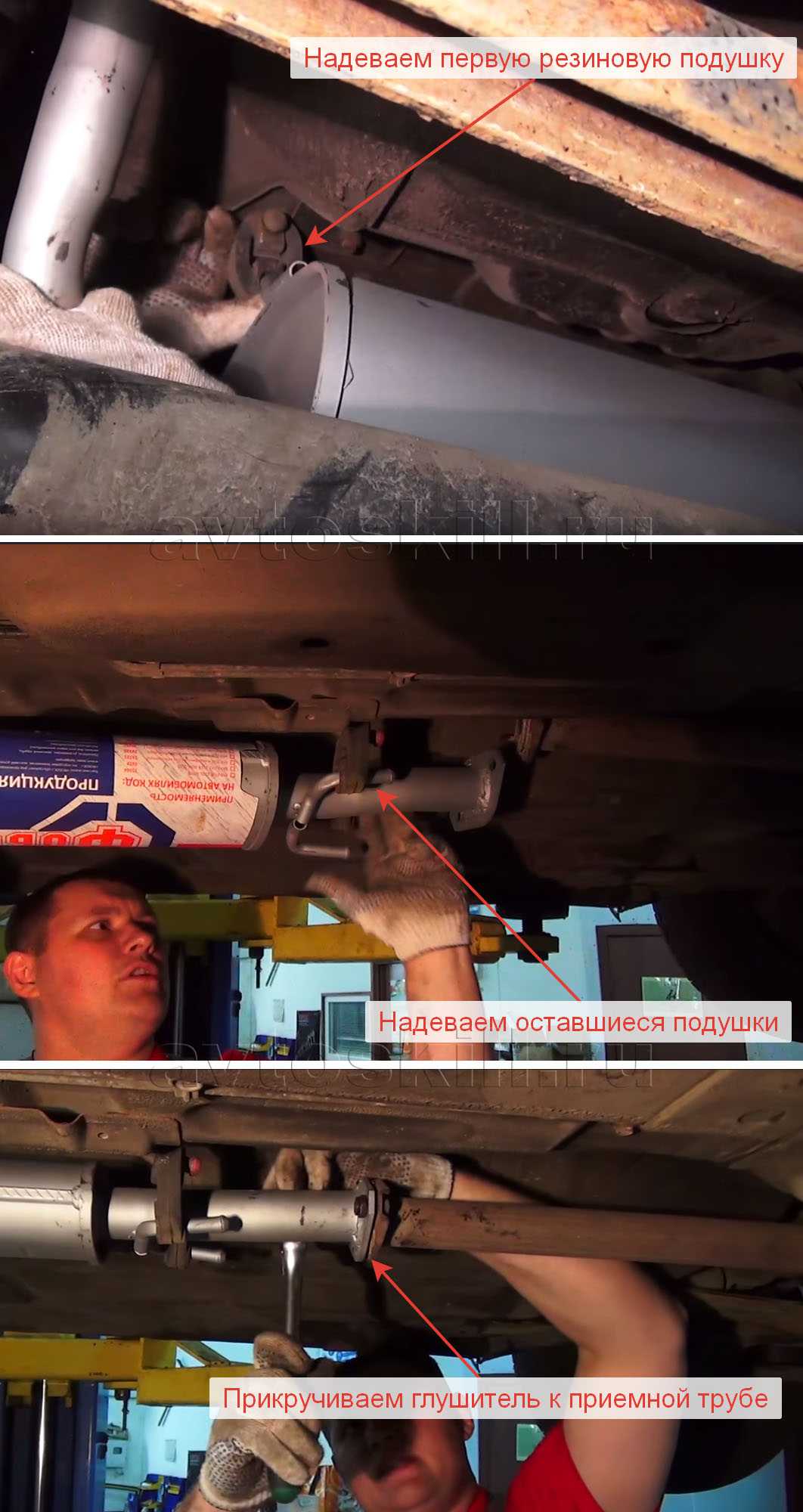 Установка нового глушителя производится в обратно порядке, описанном выше. В целом, ничего сложного нет.