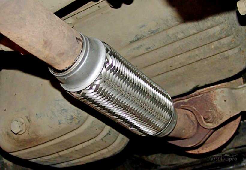 гофрированную трубку между коллектором и корпусом глушителя — такое соединение