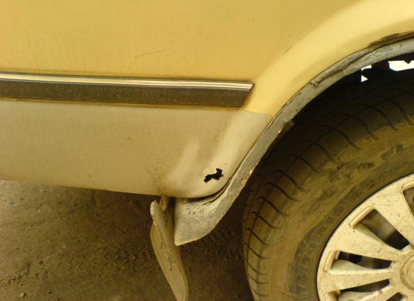 (Последний способ не совсем правильный, т.к. монтажная пена способна вызвать коррозию детали изнутри, а клеить на клей кусок металла как-то неправильно, поэтому пользуемся этим вариантом в исключительных случаях, если машину не жалко).