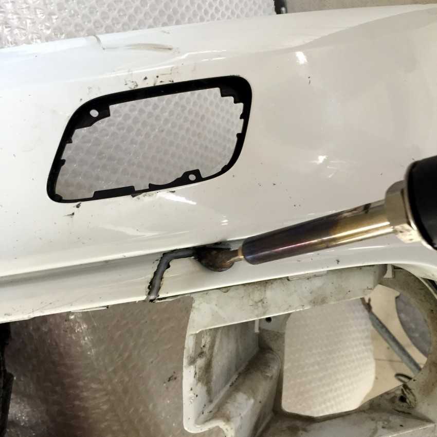 - Ремонт пластиковых частей кузова. Этот вид ремонта производится с помощью стеклоткани и эпоксидных смол. Предварительно, если, например, треснул пластиковый бампер технология ремонта позволяет произвести пайку трещины, но затем, все же, для надежности требуется произвести проклейку сваренных краев трещины изнутри.