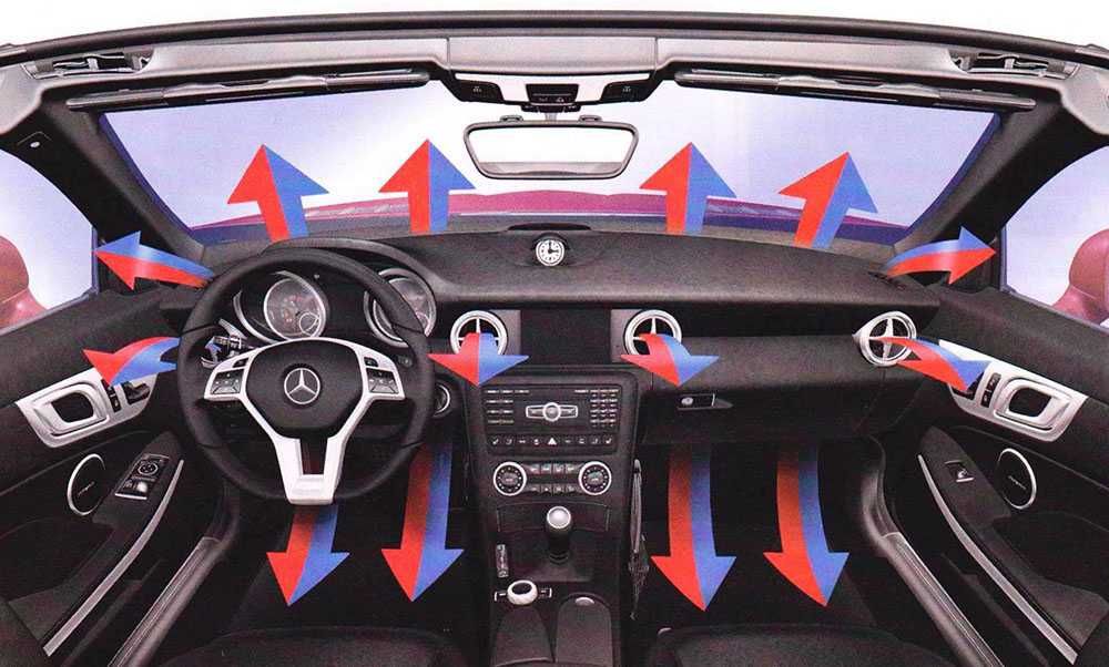- Включаем кондиционер и выбираем режим рециркуляции на максимум.
