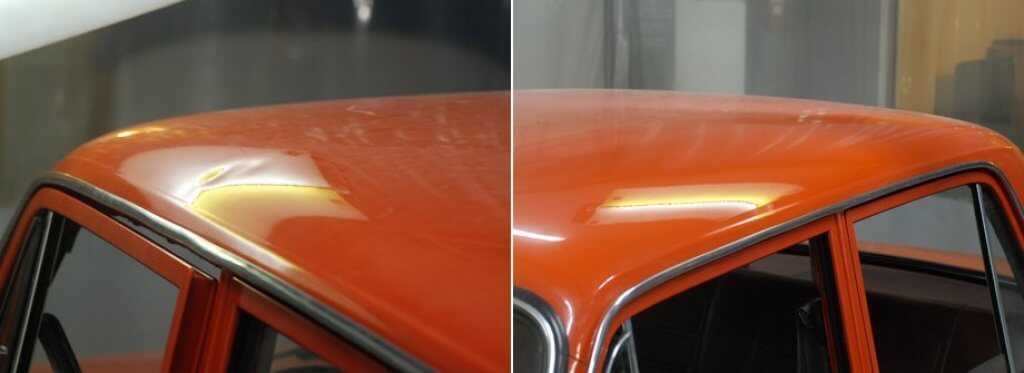 Если вам удалось устранить деформацию с использованием нужных инструментов и подходящего усилия, то растянутый металл появится только в зоне размещения дефекта. Если реставрация производилась без тщательной оценки состояния поверхностей, проблема усугубится, и следы растягивания металла проявятся по всей плоскости.