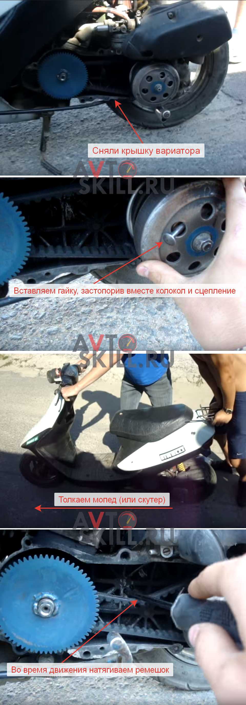 У людей есть такое мнение, что если мопед с вариатором, то на нем нельзя осуществлять запуск двигателя таким образом. На самом деле это всего лишь миф, специалисты многократно проводили тестовые испытания — ничего страшного не случится.