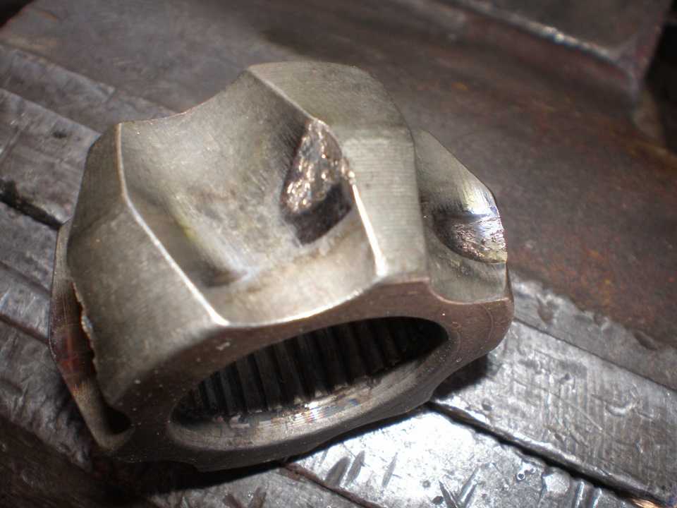 Суть в том, что граната удерживается на валу пружинным стопорным кольцом, утапливаемым в проточку шлицевой части при давлении со стороны внутренней обоймы. Угол атаки фаски обоймы на кольцо сильно зависит от деформации кольца, наличия смазки и ржавчины, конфигурации фаски.