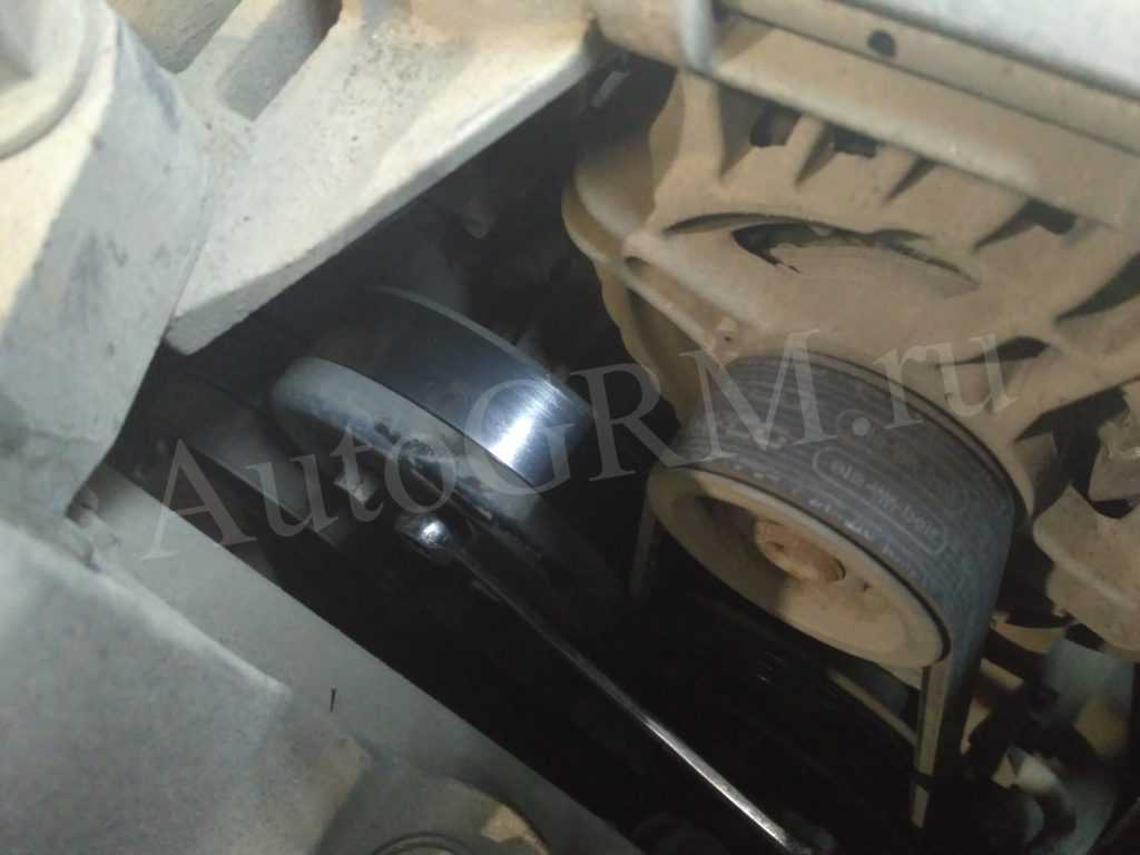 Фиксируем натяжной ролик, после чего откручиваем его и снимаем вместе с ремнем ГРМ.